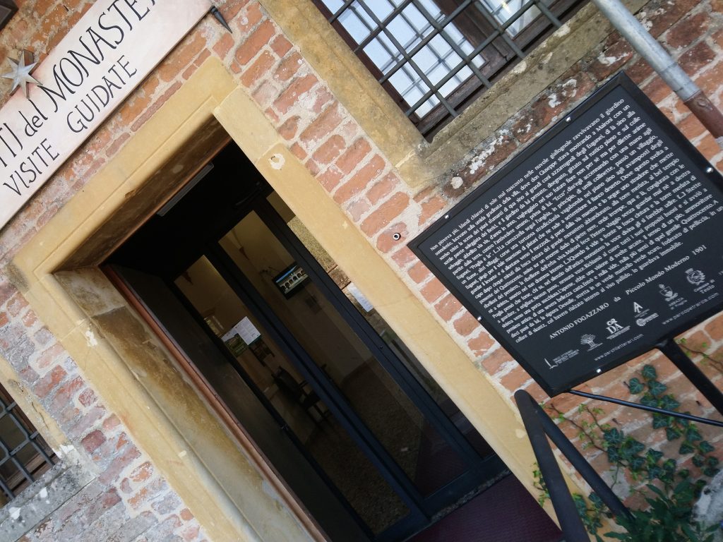 Non pioveva più, blandi chiarori di sole mal nascosto nelle nuvole giallognole ravvivavano il giardino sonnolento, lucevano sulla umida gradinata della villa, dove don Giuseppe stava mostrando a Maironi con un sorriso triste la scena dei piani sfumanti di qua sino ai grandi coni azzurrognoli degli Euganei, di là sino alla sottile parete soleggiata dei Berici, e il giardino da lui pensato, disegnato, gittato sul rustico piano e sul colle selvaggio, abbellito via via, d’anno in anno, vagheggiato nel suo futuro fiore non per sé ma per dilette anime partite dalla terra, contro l’antivedere umano, prima di lui. “Ecco”, diss’egli accennando con una mano agli Euganei, “Praglia è là”. […] La carrozzella seguì l’unghia, in principio, di umili collinette, passò un villaggio, un fiume, altri villaggi, corse una tortuosa stradicciuola vagabonda nel piano sino agli avamposti degli Euganei, piegò per il viale maestoso di platani che ne rade a settentrione il fianco deserto. Dove questo svolta a guardar il levante e si allontana verso il mezzodì, si parte dalla via maestra e lo segue uno stradone che mette capo dopo cinque minuti alla fosca cintura del grande monastero abbandonato, alla torre merlata, al bel tempio possente del Quattrocento, assiso sur un enorme dado di pietre nere, onde irrompe, qua e là, congiurata con le ribellioni del pensiero, la ribellione dell’erba viva. Maironi fece l’intero viaggio senza guardar mai né a destra né a sinistra, assorto nel suo dramma interno. […] Quando si vide a fronte la fosca cintura e la torre merlata di Praglia pensò che forse, chi sa, nel silenzio dell’antico monastero la voce divina gli si farebbe udire. […] Stette a guardare, a origliare. Nessun passo, nessuna voce. Richiamò al cuore tutti i suoi propositi buoni e si avviò a sinistra verso una porta socchiusa. L’aperse, ebbe una visione di svelte arcate, il senso di un pio, ammonitore pensiero antico, di una severa bellezza casta. Entrò e nulla vide, nulla più sentì di quel gentile Quattrocento. A dieci passi da lui, la signora Dessalle, stretta in un verde mantello verde scuro, foderato di pelliccia, in un collare di skuntz, col bavero rialzato intorno al viso pallido, lo guardava immobile.