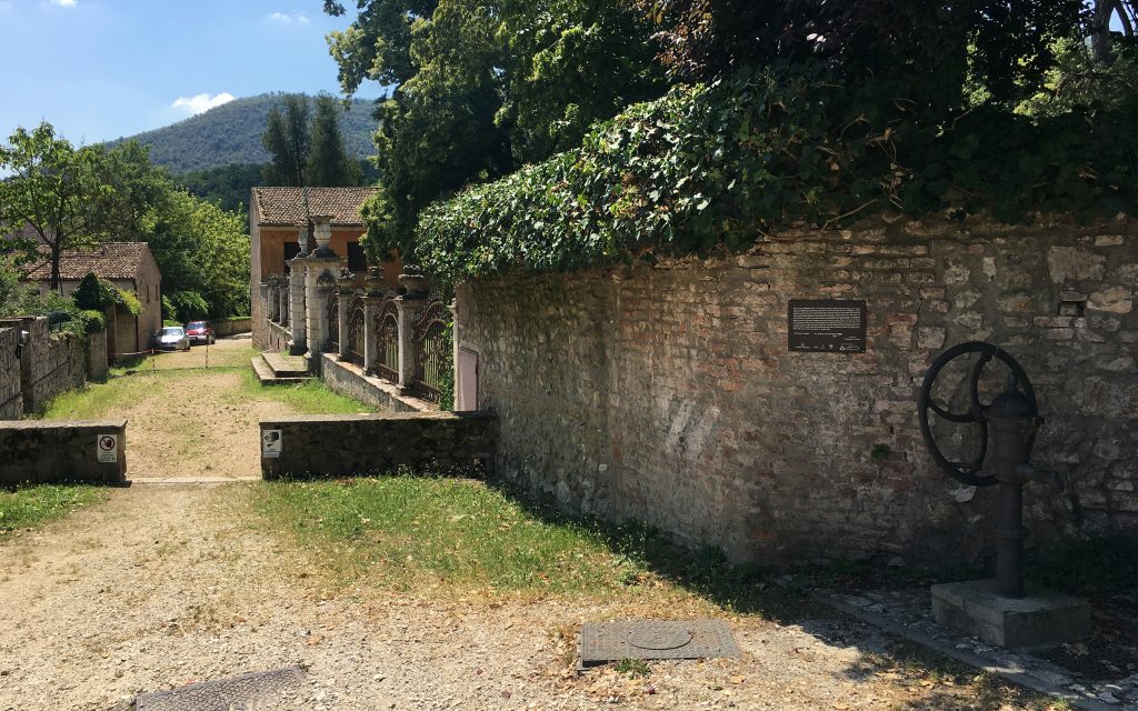 "Non era ancora sopraggiunta la sera e vi era tempo per visitare il giardino della Villa Barbarigo, poco lontano. Quasi per prolungare la luce del giorno, su dalla vetta di un colle vicino una nube erta e sventagliata, come un pennacchio, si prese tutto il rosso del sole che già non si vedeva più, perché se ne era andato al di là dei colli. Pareva che quel vulcano antico e spento rievocasse nella sua fantasia i momenti delle sue più belle eruzioni. Al riverbero di questa luce penetrai in un viale dove le fronde abbassate e intricate formavano un lunghissimo portico arboreo, poi si giunse tra alte pareti formate da piante verdi e fitte, tagliate minuziose, tramutate in vicoletti, in archi e in altri portici. Respiravo una tristezza immensa soprattutto perché mi si rendevano presenti certe illustrazioni di Gustavo Dorè con alberi fantastici sino a impaurire. Ma stranamente mi sentii vivere come in un’epoca lontana tra quelle prospettive vegetali che si facevano sempre più cupe col dileguarsi della luce. La certezza di vivere in un’altra epoca finì col convincermi che fosse un ricordo di un’altra vita, vissuta forse in quella villa e che avessi passeggiato tra quegli alberi."