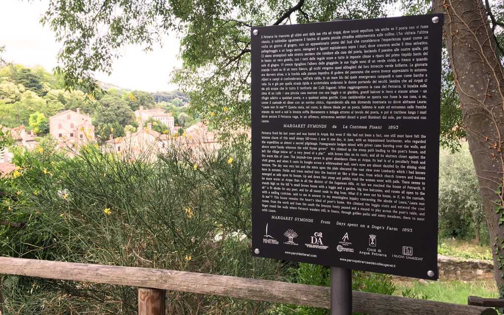 Il Petrarca ha trascorso gli ultimi anni della sua vita ad Arquà, dove trovò sepoltura. Ma anche se il poeta non vi fosse vissuto, si subirebbe ugualmente il fascino di questa piccola cittadina addormentata sulle colline. L’ho visitata l’ultima volta un giorno di giugno, con un appassionato uomo del Sud che considerava l’esperienza quasi come un pellegrinaggio a un luogo sacro. Melograni e ligustri esplodevano sopra i muri, dove cresceva anche il timo selvatico. Ci siamo arrampicati sulle stretto sentiero che conduce alla casa del poeta, lasciando il paesino alle nostre spalle, più in basso: un vero gioiello, con i tetti delle tegole scure e tutte le imposte chiuse a riparo del primo tiepido bacio del sole di giugno. Vi cresce rigoglioso l’albero delle giuggiole: le sue foglie sono di un verde vivido e fresco e quando stende i rami su di un muro bianco, gli occhi vengono quasi abbagliati dal loro intreccio verde brillante. La giornata era davvero afosa, e la foschia sulla pianura impediva di godere del panorama che avevo invece apprezzato in autunno. Alberi e campi si confondevano, nell’aria calda, in un mare blu dal quale emergevano campanili e case come barche a vela. Su e giù per quella strada ripida e acciottolata andavano le donne portando dei secchi. Sembra che ad Arquà ci sia più acqua che in tutto il territorio dei Colli Euganei. Infine raggiungemmo la casa del Petrarca. Si innalza sulla cima di un colle – una piccola casa marrone con una loggia e un giardino, grandi balconi in ferro e stanze ariose – un rifugio adatto a qualsiasi poeta, e a qualsiasi anima gentile. Cosa cambierebbe se questa non fosse la sua casa, o se, come il custode mi disse con un sorriso cinico, rispondendo alla mia domanda insensata su dove abitasse Laura: “ Laura non fu mai”? Questa resta, nel cuore, la dimora ideale per un poeta. Salimmo le scale ed entrammo nelle fresche stanze: da nord a sud la brezza soffia liberamente e indugia attorno al tavolo del poeta, e poi si trattiene lungo i muri dove ancora il Petrarca vaga, in un affresco, attraverso sentieri dorati e prati illuminati dal sole, per incontrarsi con Laura.
